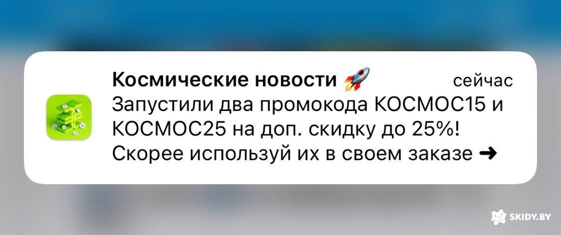Промокод не суммируется со скидками выше -40%, акциями 3=2, 2=1 и подарками при покупке.