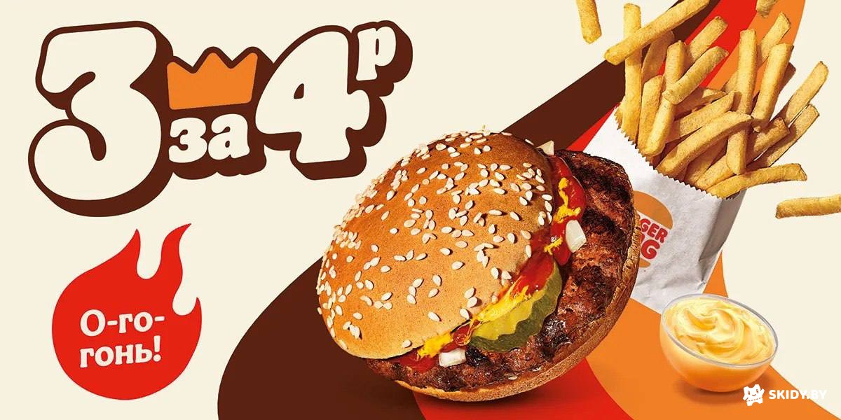 Гамбургер/Чикенбургер/Наггетсы 3шт + Кинг Фри мал + соус всего за 4 рубля!