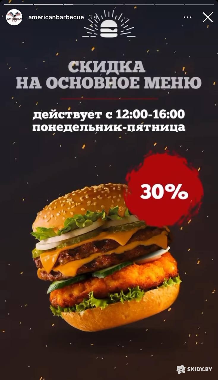 Скидка 30% на основное меню с 12:00 - 16:00.
