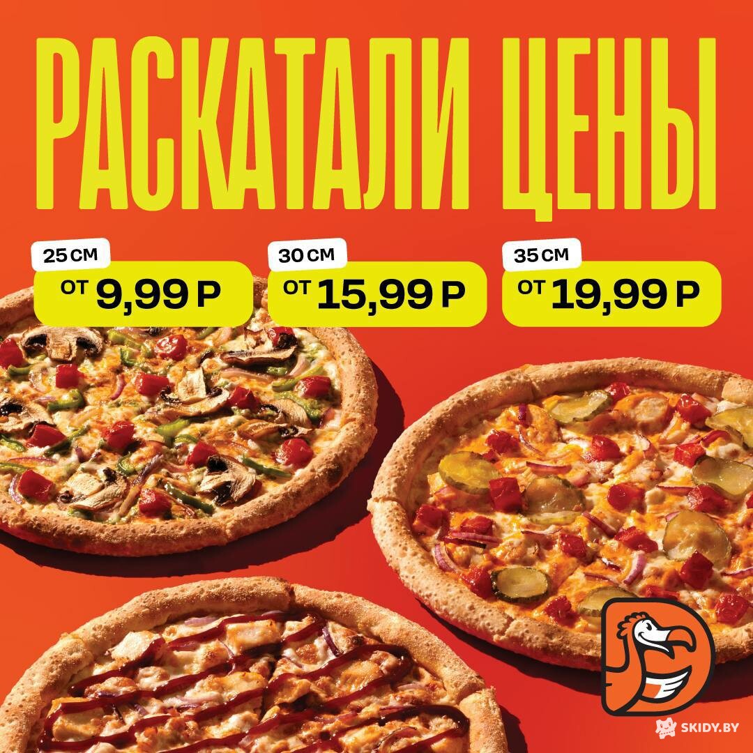 - большие пиццы — от 19,99 рублей.