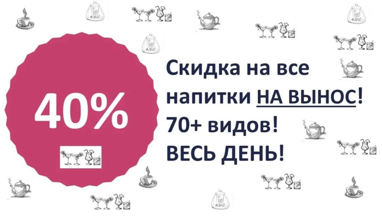 40% скидка на все напитки навынос, весь день в «Бьярг»