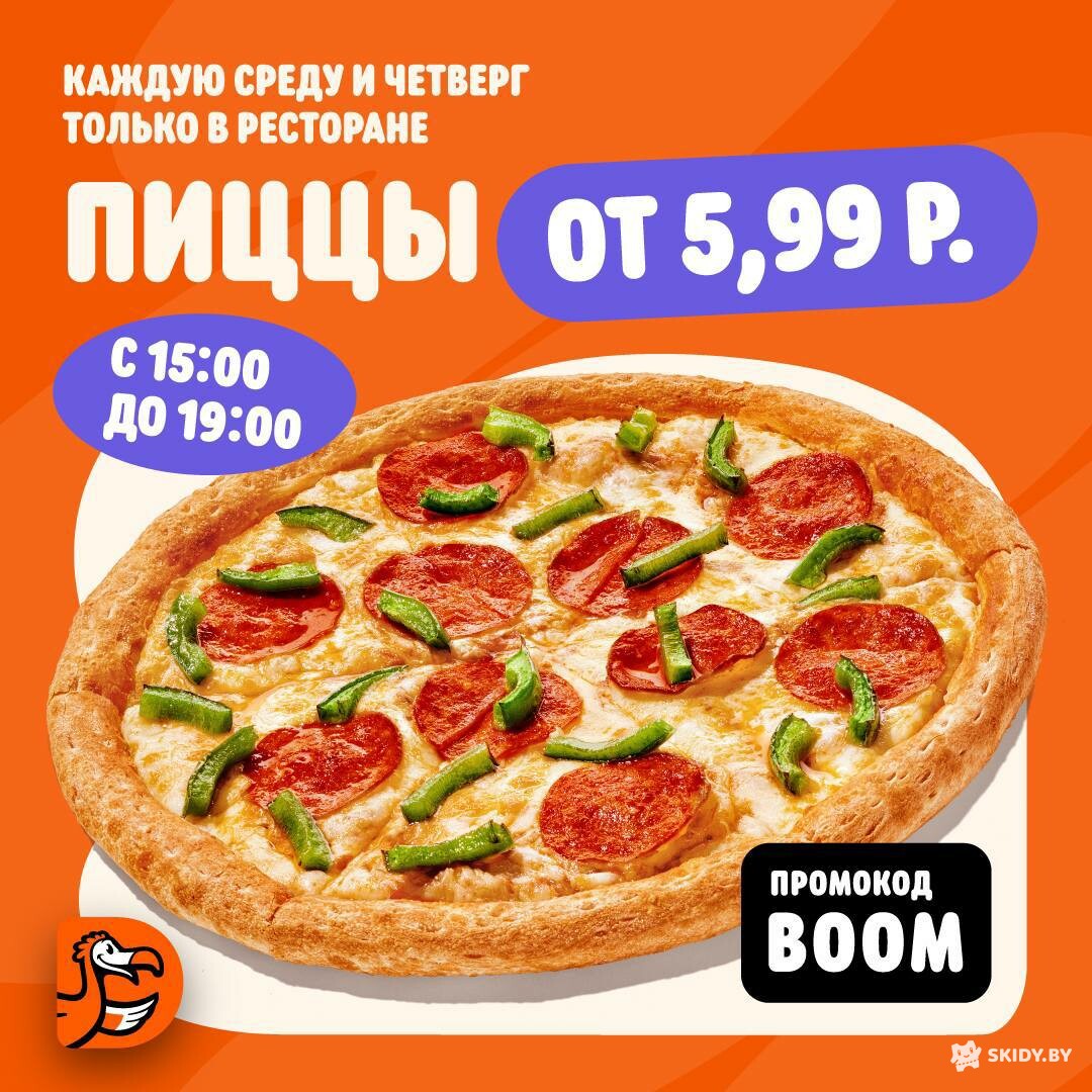 Акция распространяется на 6 пицц: Чоризо фреш, Маргарита, Ветчина и огурчики, Сырная, Ветчина и сыр, Двойной цыпленок.