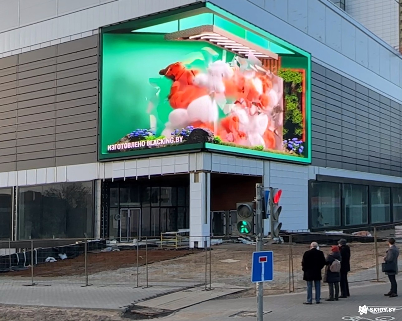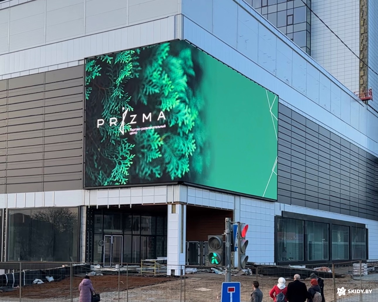 На фасаде ещё не открывшегося ТРЦ «Prizma» на Партизанском проспекте, 77A установили 3D-экран, как в Нью-Йорке и Сеуле только высотой 9,6м и длиной 16м для того, чтобы крутить 3D-ролики с эффектом залипания