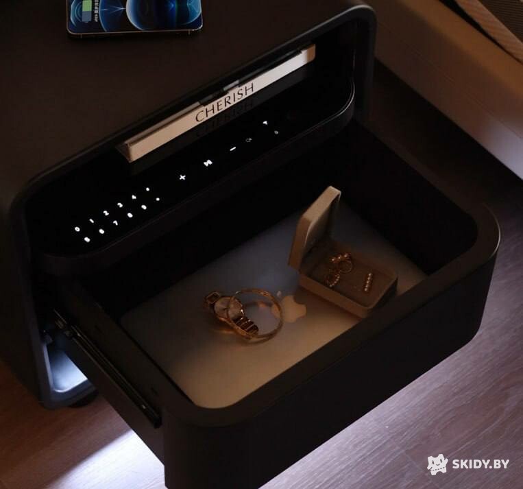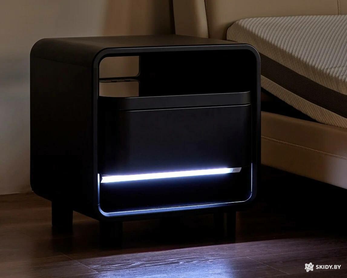 Xiaomi представили тумбу будущего — в умном прикроватном столике разместились беспроводная зарядка, будильник и сейф с отпечатком пальца.