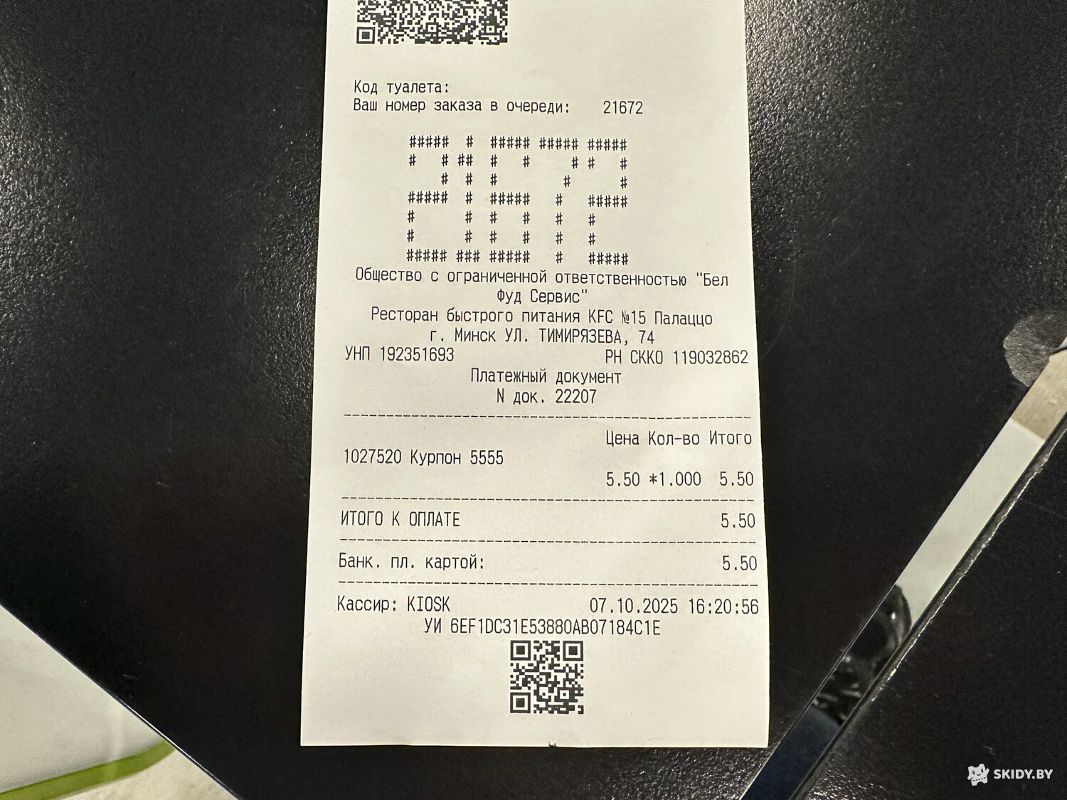Забирайте самый популярный промокод 5 за 5,50 во всех "KFC"