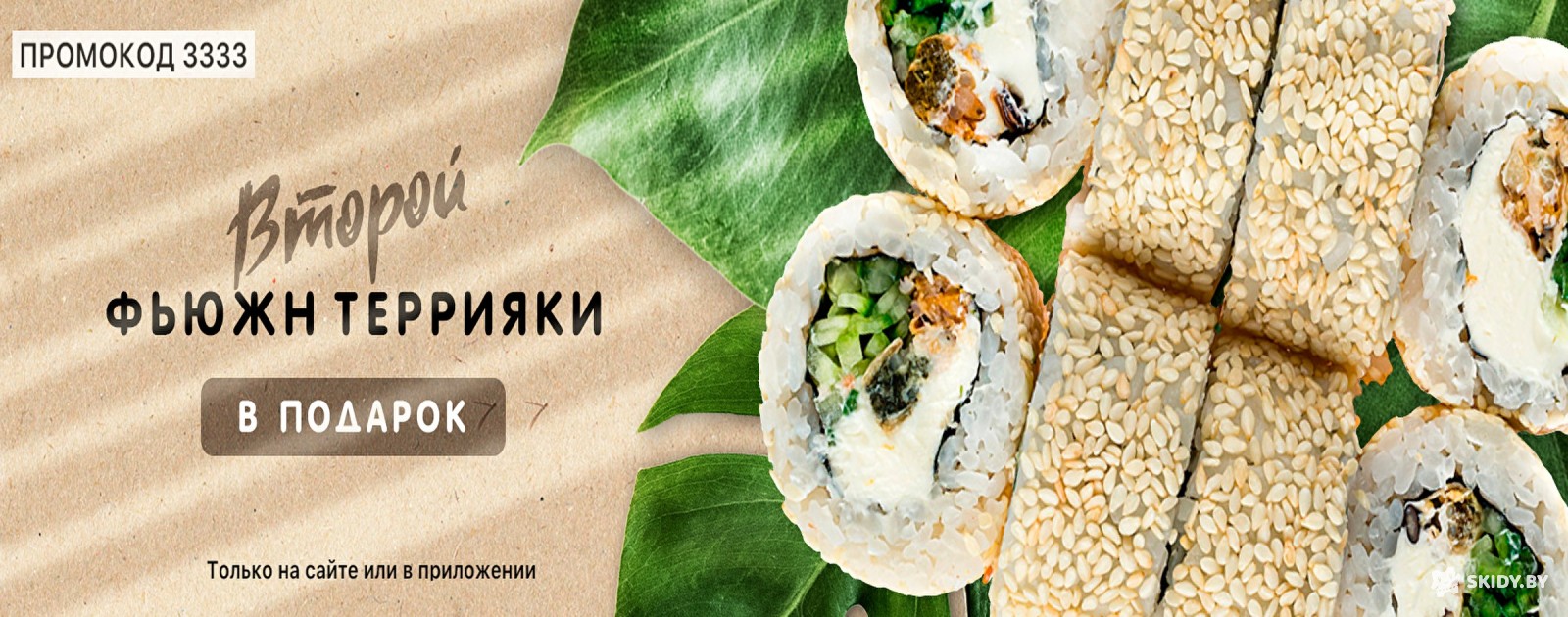- Акция: Второй ролл Фьюжн терияки в подарок