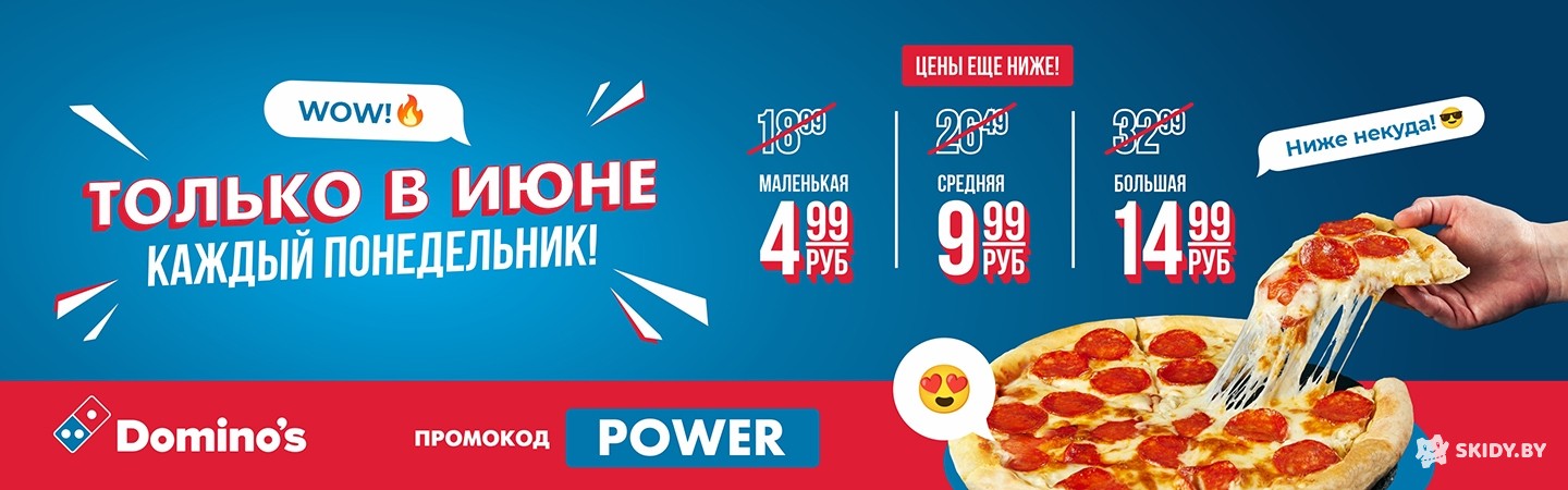 Горячая Domino's Pizza с бесплатной доставкой в твоем городе! Всего 30 минут - и пицца от Доминос у тебя в руках. Просто огонь!