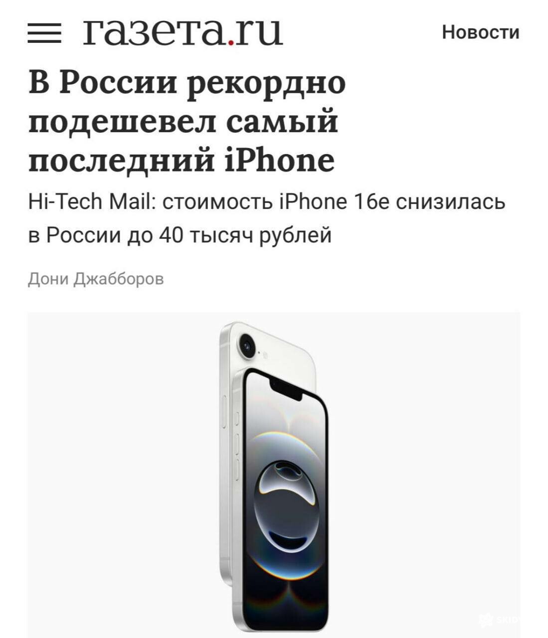 iPhone 16e в России подешевел до рекордных 40 тысяч рублей (500$) — это на 40% меньше начальной цены