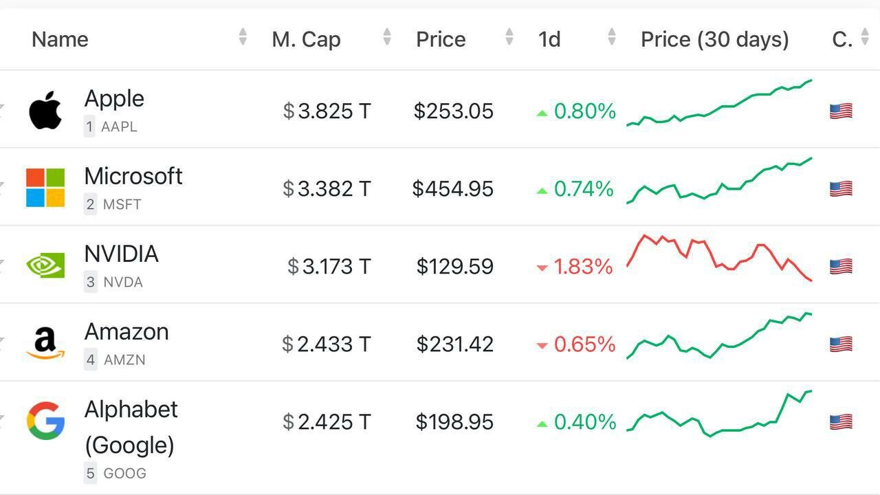 Nvidia подавала летом большие надежды, но в качестве «самой дорогой компании мира» продержалась всего пару дней.