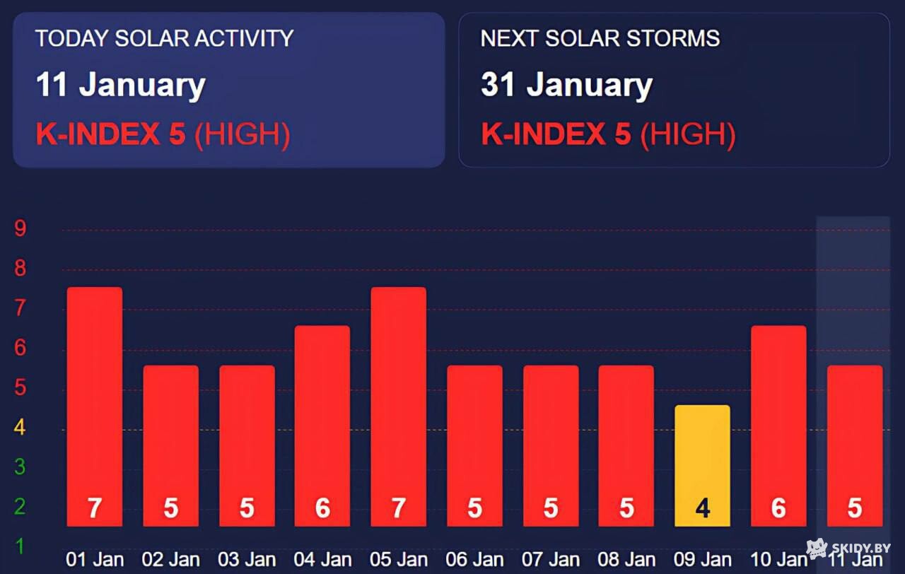Метеозависимым приготовиться: Землю продолжает трясти уже 13-й день подряд. Сегодня прогнозируется очередная магнитная буря с K-индексом 5. Интенсивность шторма снизилась, но его влияние всё ещё ощутимо. Возможны головные боли, тошнота, апатия и обострения хронических заболеваний.