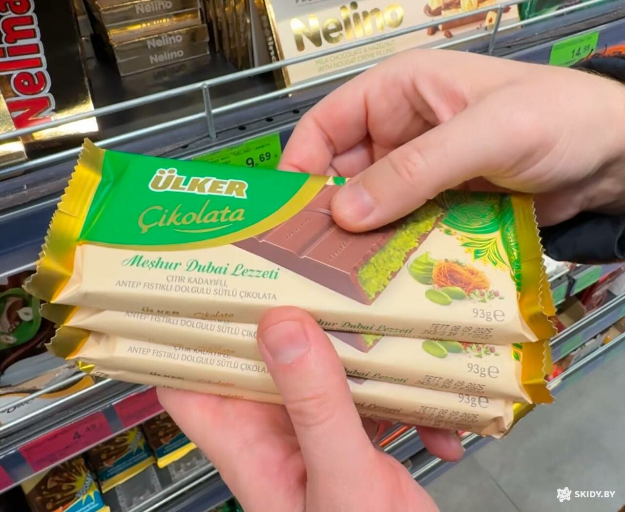 В магазинах сети «Евроопт» появилась новая уникальная позиция — дубайский шоколад, цена которого составляет 11,99 рубля.
