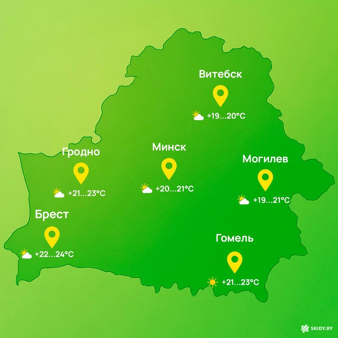 В ближайшие дни вас ждёт идеальный погодный сценарий - яркое солнце, небольшая облачность и ни капли дождя. В Минске столбик термометра поднимется до комфортных +21°C.