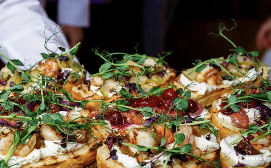Скидка 10% на мясо, салаты, супы, закуски, горячие блюда, напитки, десерты и другие позиции из меню.